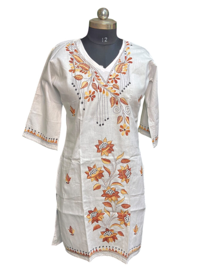 Ladies Premium Kurti | Cotton Blend | Floral Embroidery | Straight Cut | Round Neckline | Comfortable Ethnic Wear for Women | Casual and Festive