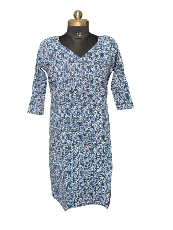 3XL SIZE| V NECK COTTON PRINTED KURTI | BLUE