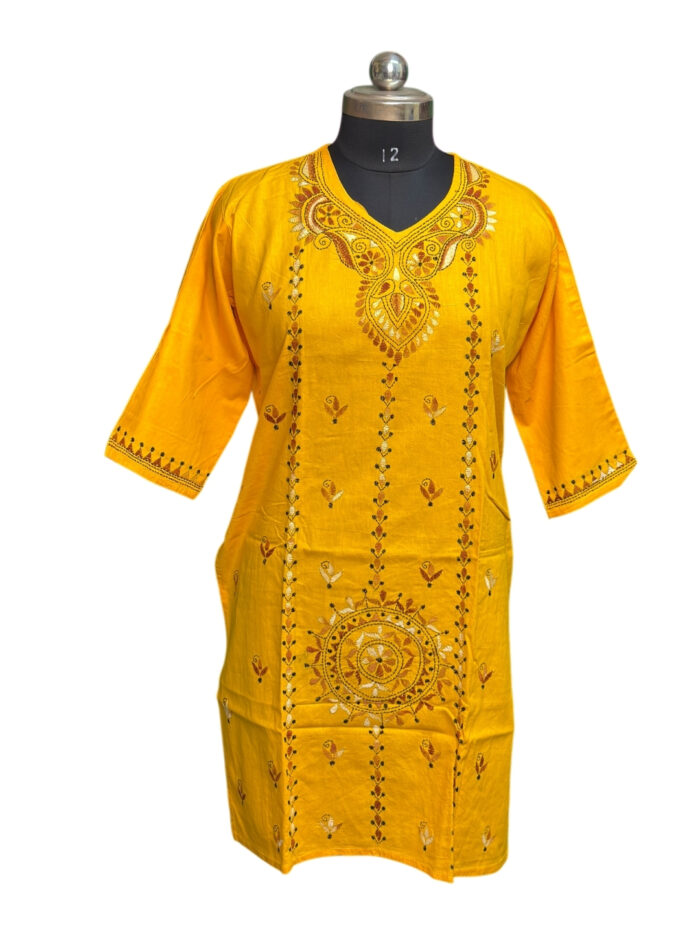 4XL SIZE| COTTON STITCHED KURTI | YELLOW