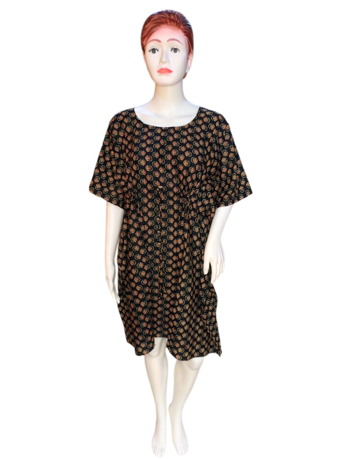 Free Size| Ladies Cotton Kaftan Kurti| BLACK