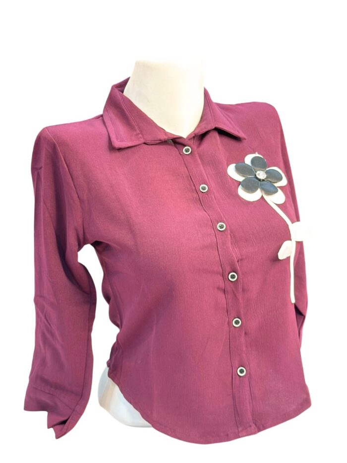 FREE SIZE| LADIES STYLISH PREMIUM SHIRT TOP | WINE