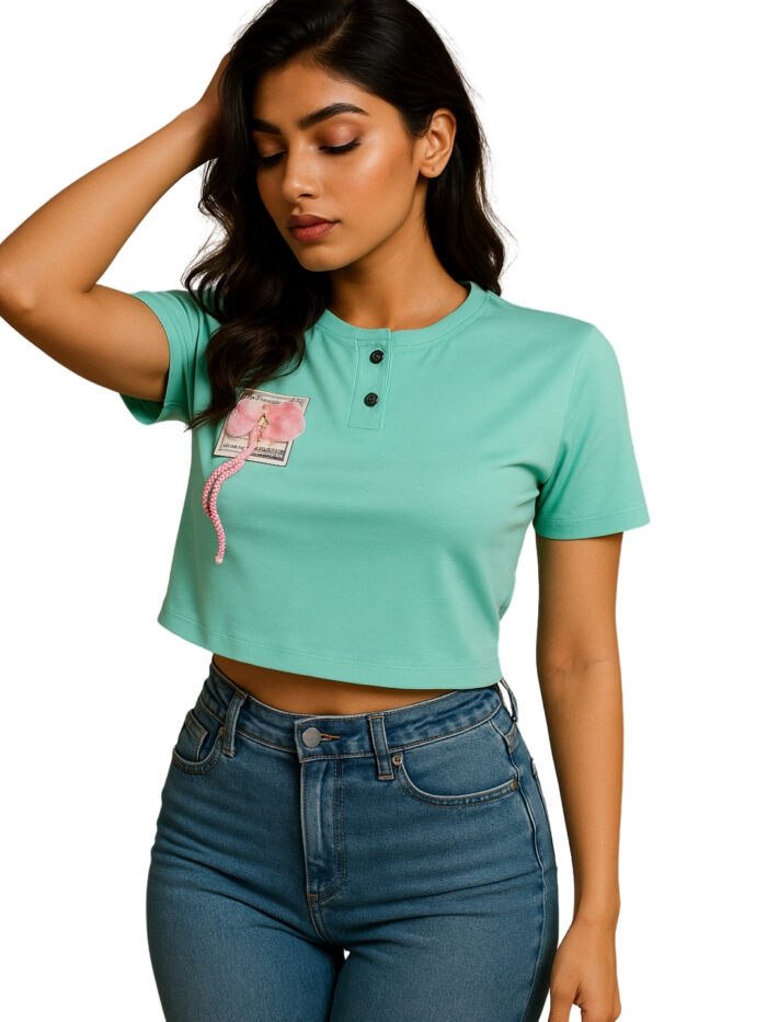 Ladies Stylish Premium Crop Top – trendy and comfortable crop top in premium cotton blend, perfect for casual outings, parties, and daily wear. Available in multiple colors. Ideal for pairing with high-waisted bottoms.