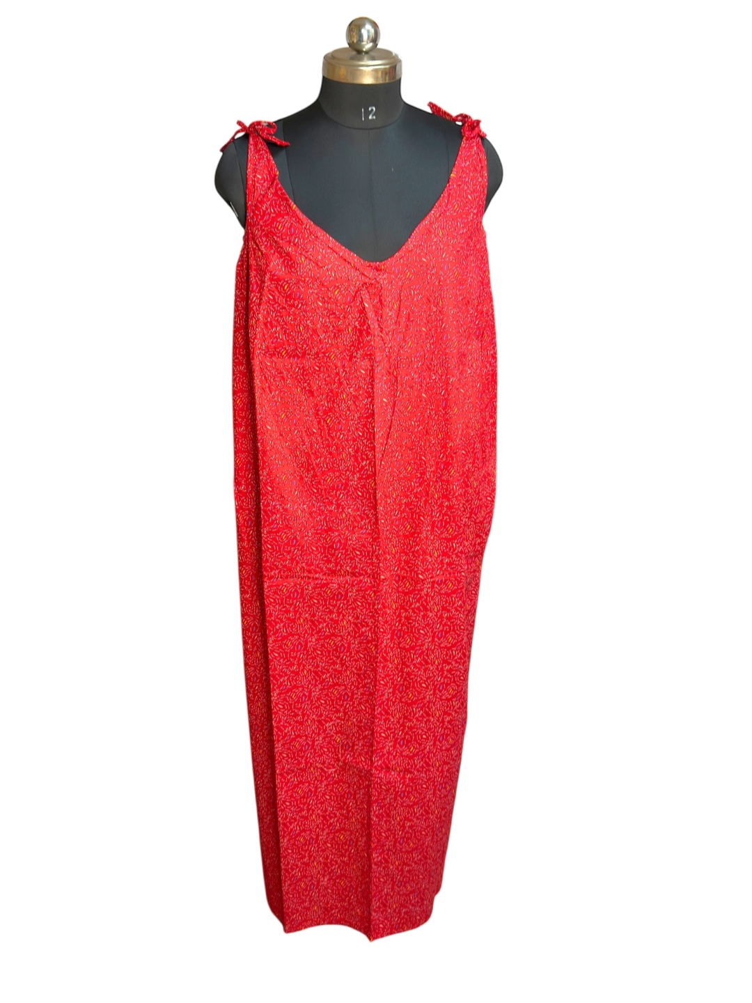 LADIES COTTON ROUNDNECK PRINTED SLEEVELESS NIGHTY/ NIGHTDRESS| RED