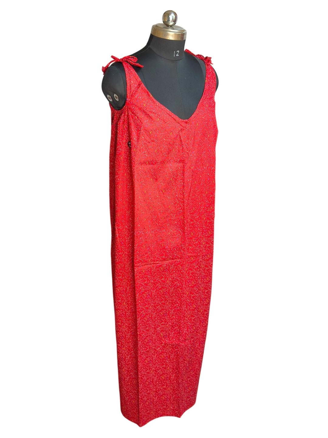 KAMALA| LADIES COTTON ROUNDNECK SLEEVELESS KNOT NIGHTY/ NIGHTDRESS| RED ₹699.00 Original price was: ₹699.00.₹450.00Current price is: ₹450.00.