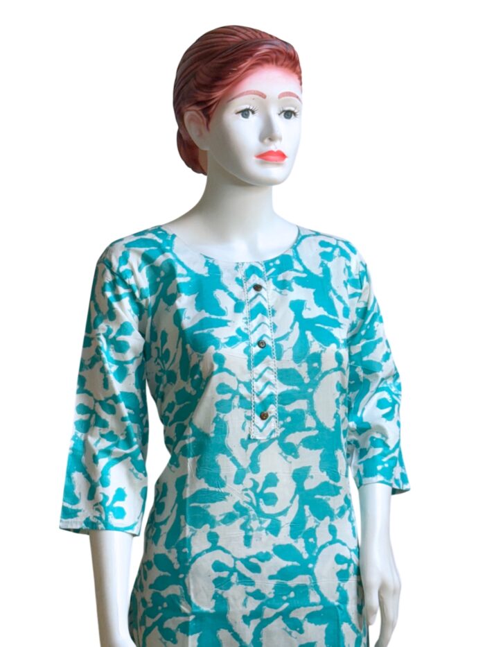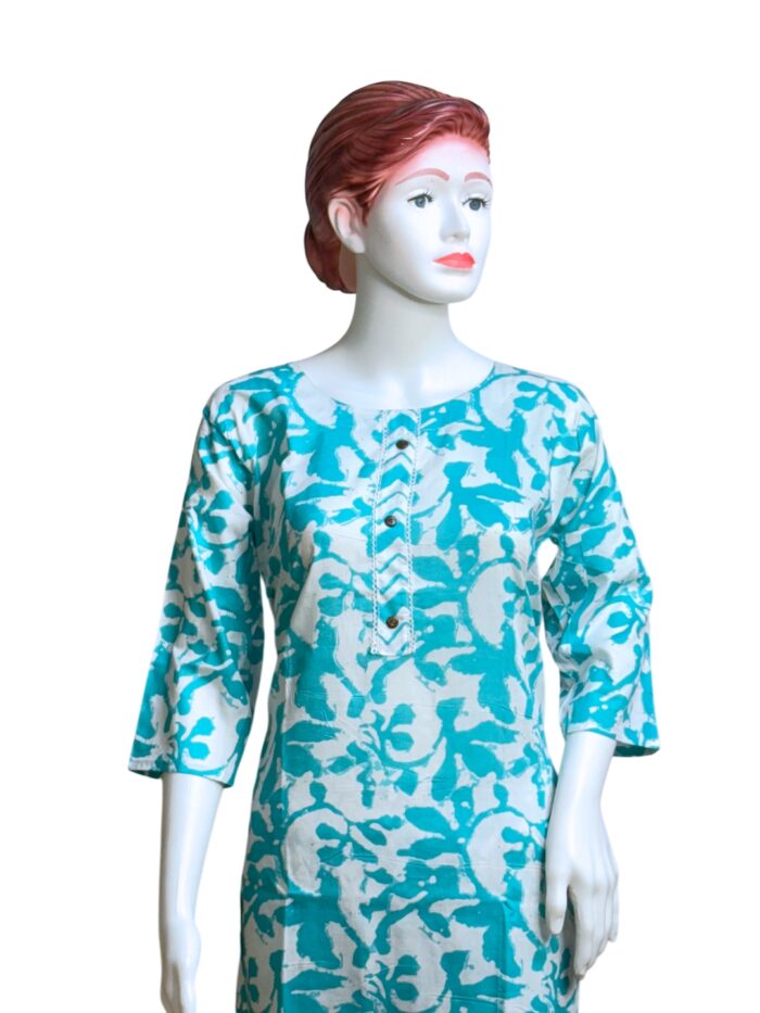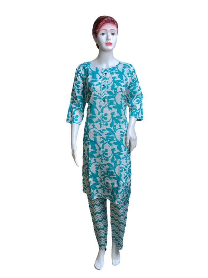 L SIZE| BUDGET COTTON 2 Pieces PRINTED Kurti/Salwar Suit| Blue