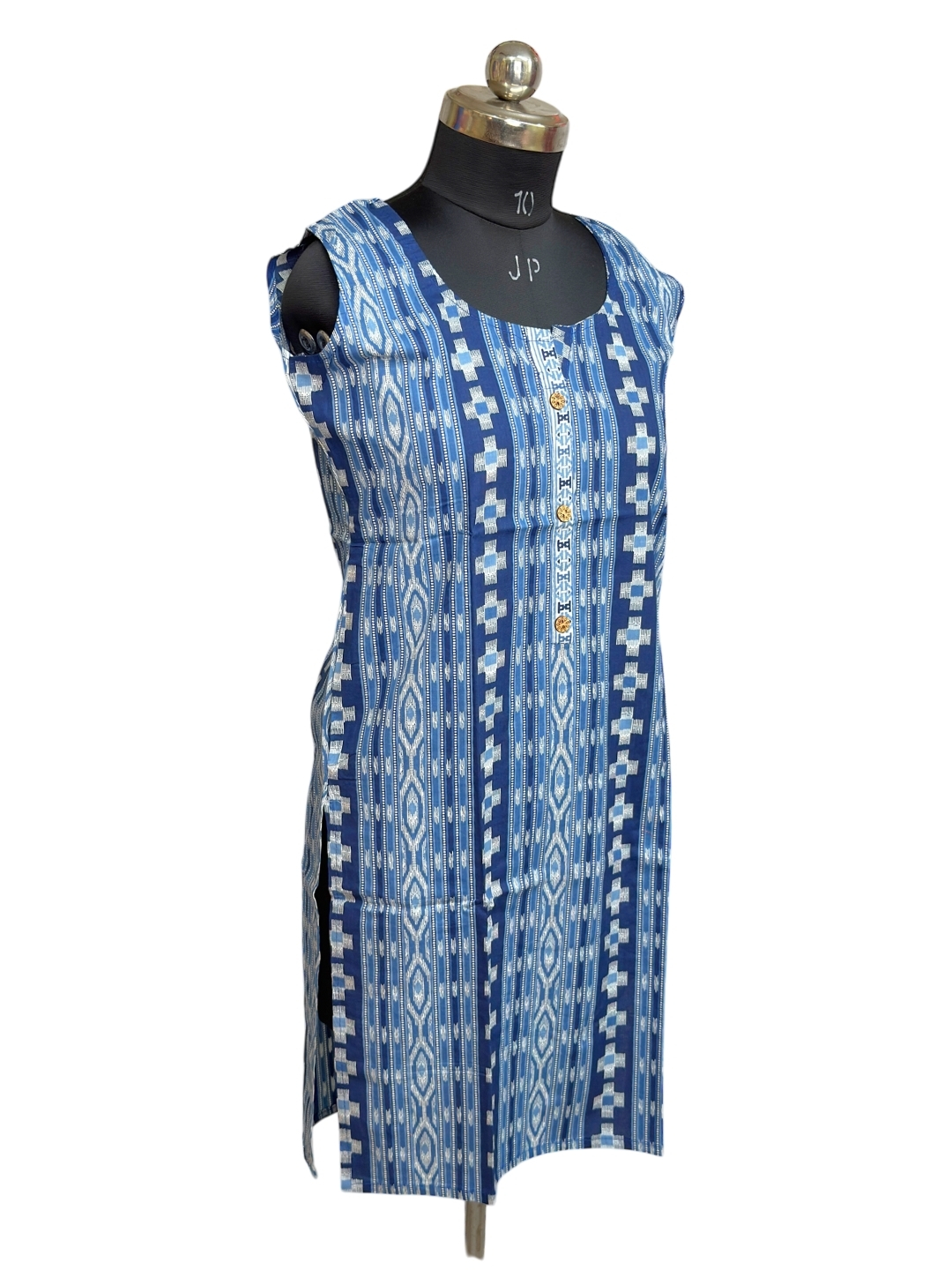 L SIZE| COTTON BUDGET KALAMKARI SLEEVELESS KURTI | BLUE