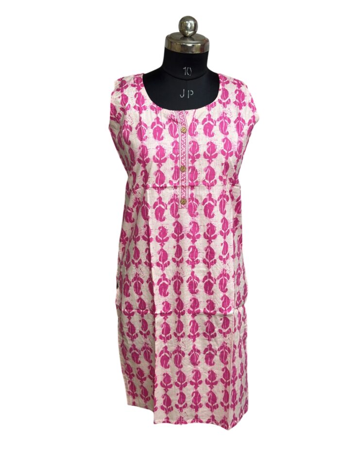 L SIZE| COTTON BUDGET KALAMKARI SLEEVELESS KURTI | PINK