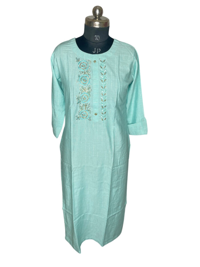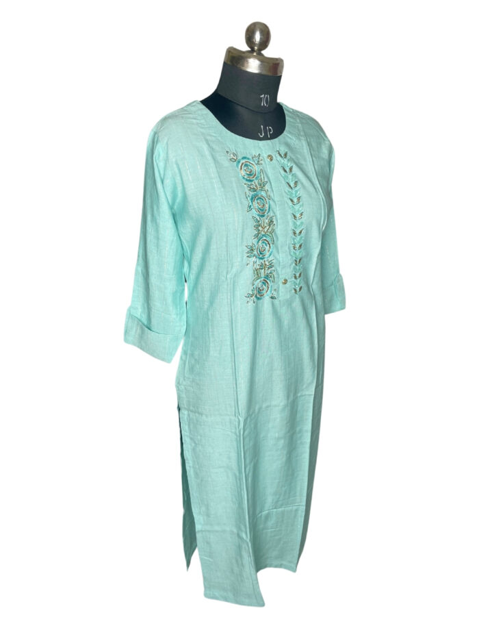 Ladies Premium Kurti | Cotton Blend | Floral Embroidery | Straight Cut | Round Neckline | Comfortable Ethnic Wear for Women | Casual and Festive