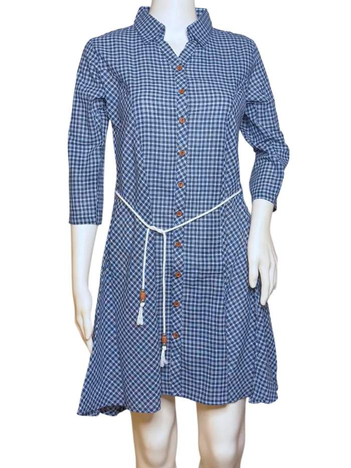 Home WOMEN Ladies One Piece L Size| Premium Cotton Check Collar One Piece| Blue