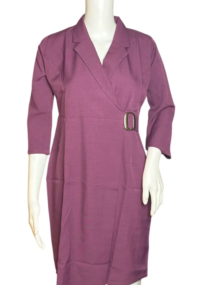L Size| Premium Silk Plain Collar One Piece| Lavender Pink