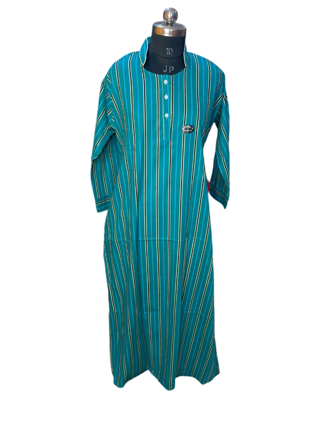 Stay cozy with this breathable cotton nightdress featuring a stylish allen cut design, full sleeves, and a relaxed fit. Perfect for daily wear, it’s soft, durable, and ideal for all seasons.