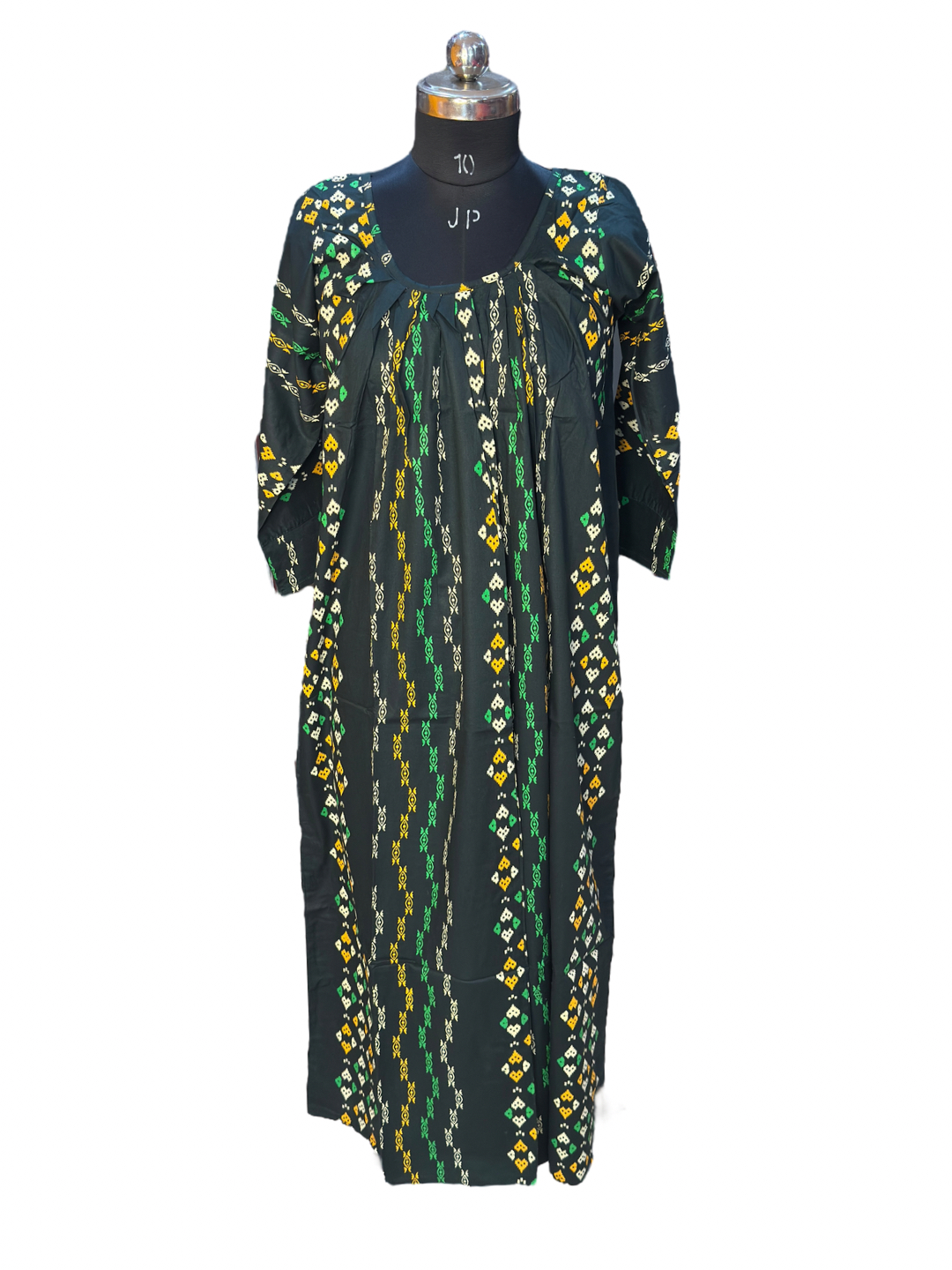 LADIES COTTON ALLEN CUT FULL SLEEVE NIGHTY/ NIGHTDRESS| GREEN