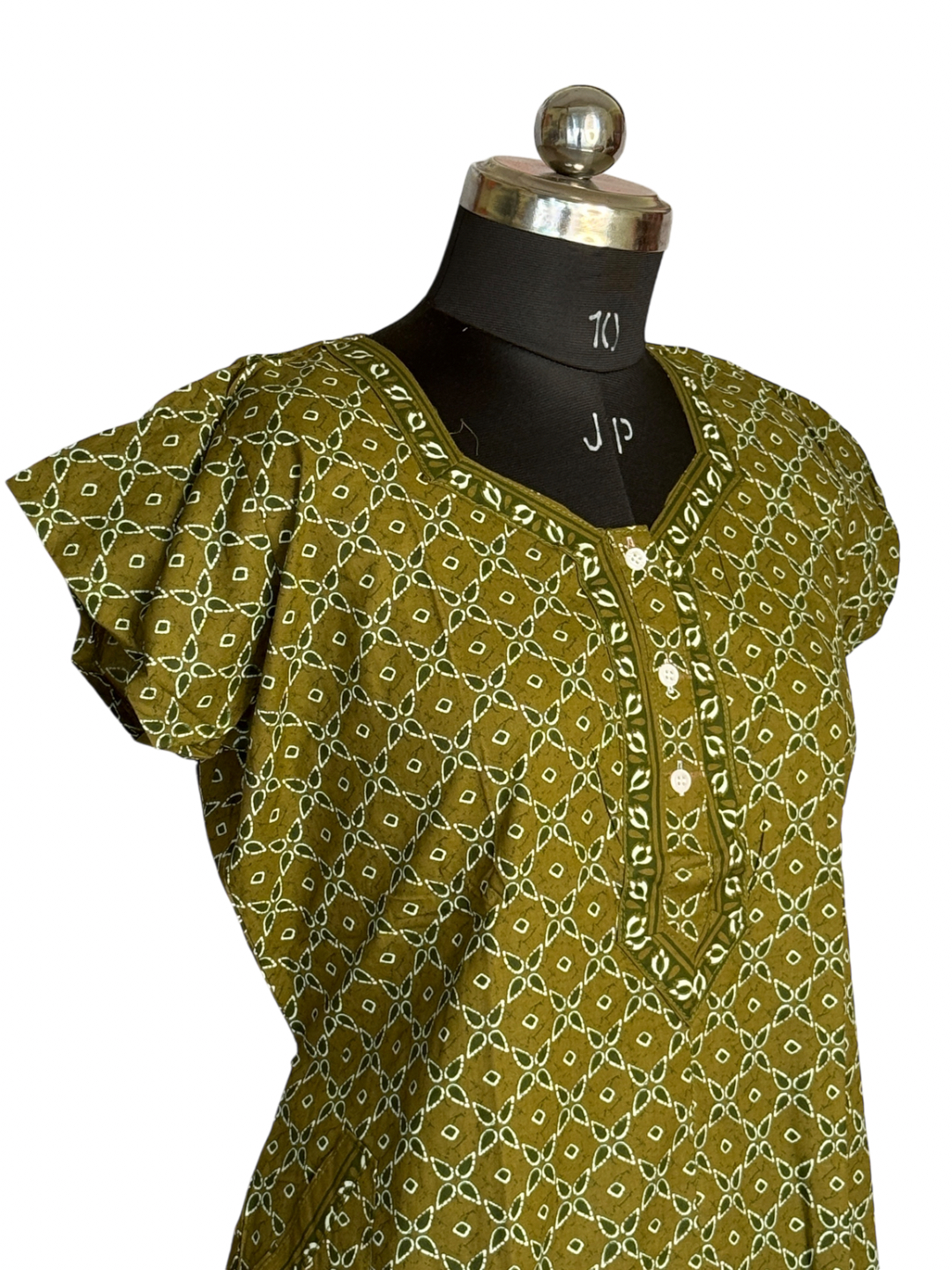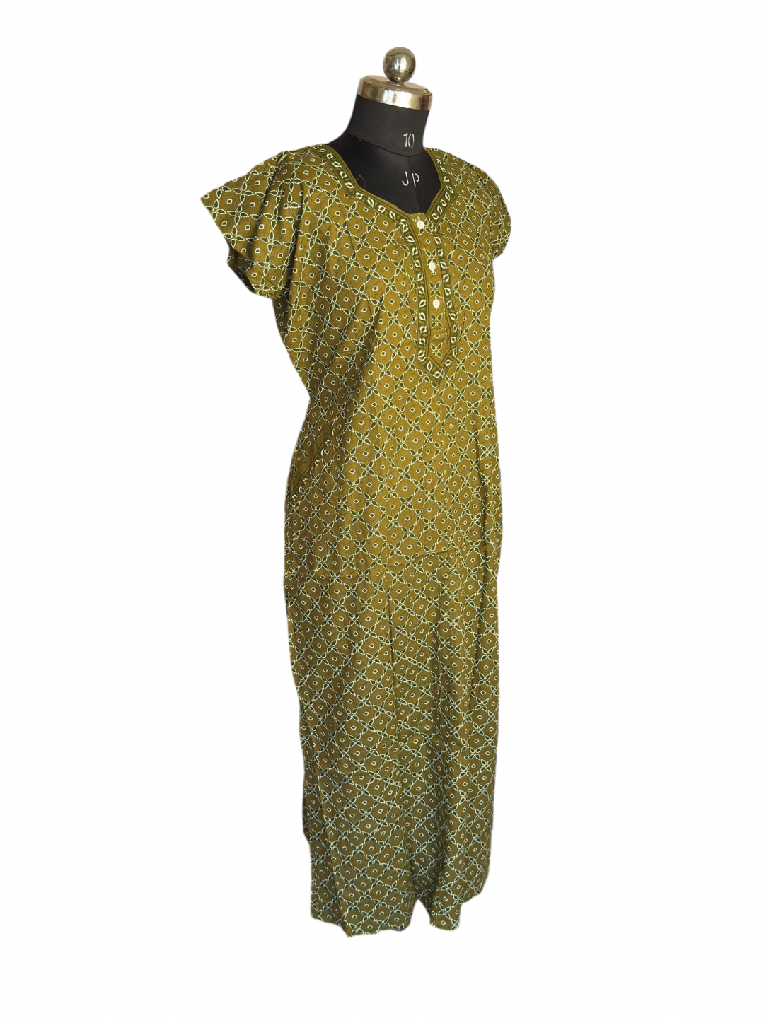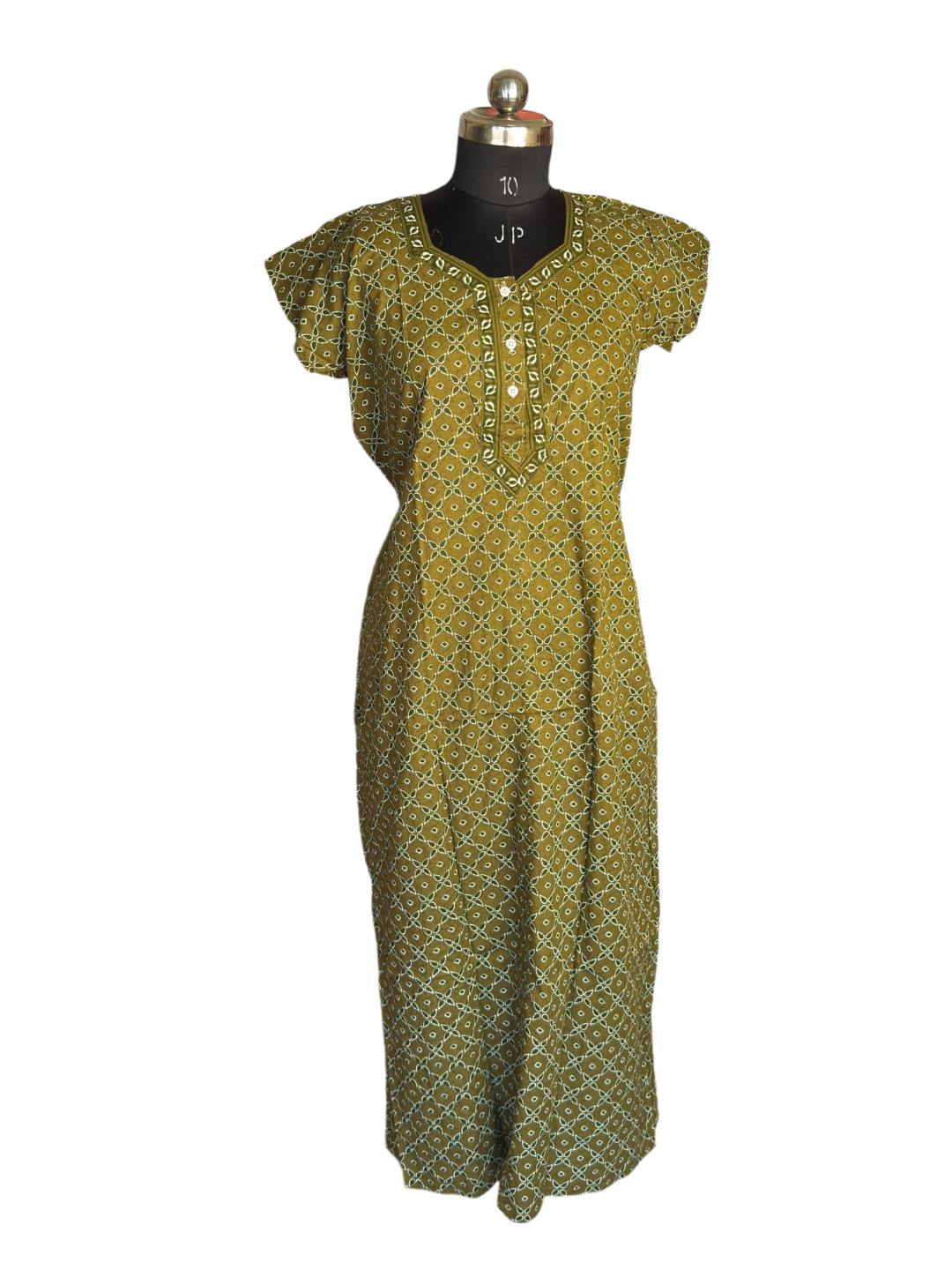 LADIES COTTON ALLEN CUT PRINTED NIGHTY/ NIGHTDRESS| GREEN