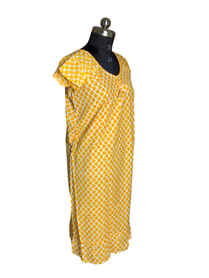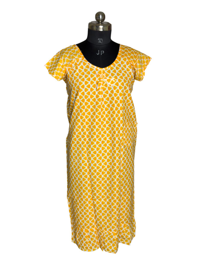 LADIES COTTON ROUNDNECK PRINTED SHORT NIGHTY/ NIGHTDRESS| YELLOW