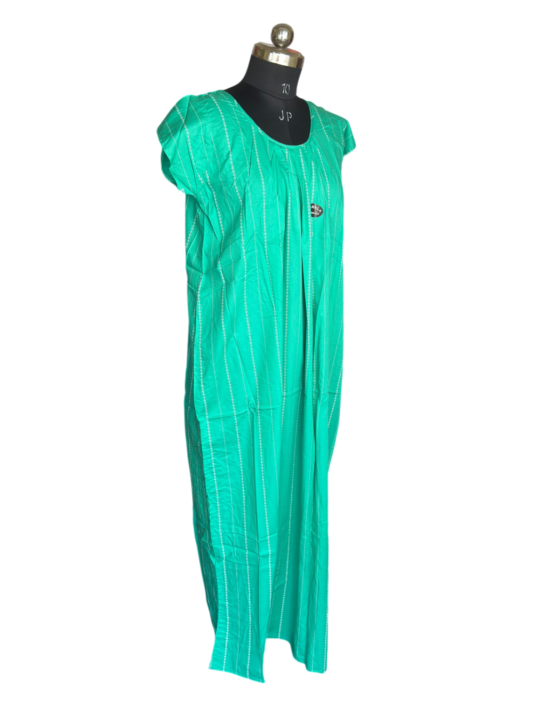 LADIES COTTON ROUNDNECK PRINTED NIGHTY/ NIGHTDRESS| GREEN