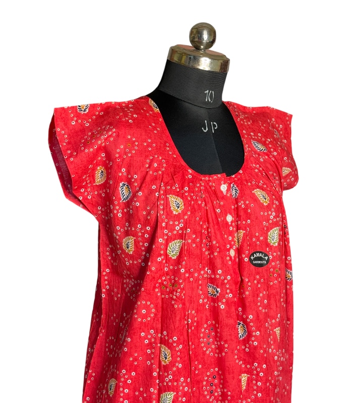 LADIES COTTON ALLEN CUT PRINTED NIGHTY/ NIGHTDRESS| RED