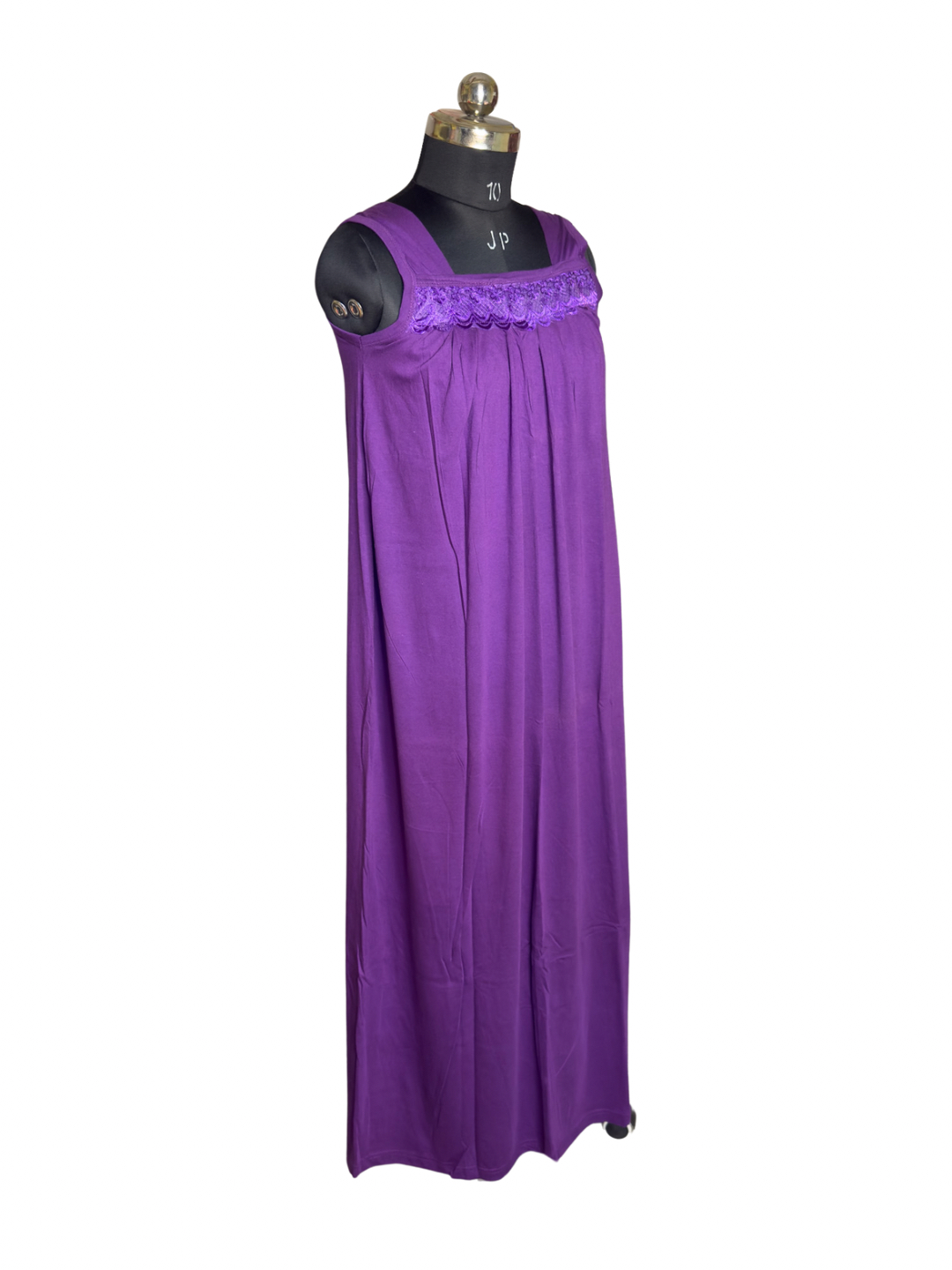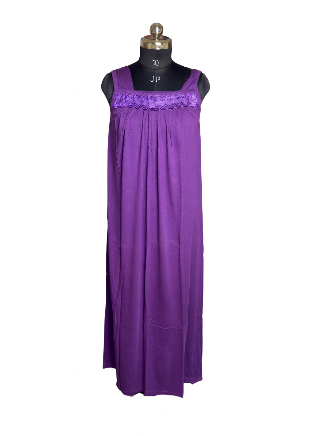 LADIES  GENJI COTTON  SLEEVELESS  PLAIN NIGHTY/ NIGHTDRESS| Violet