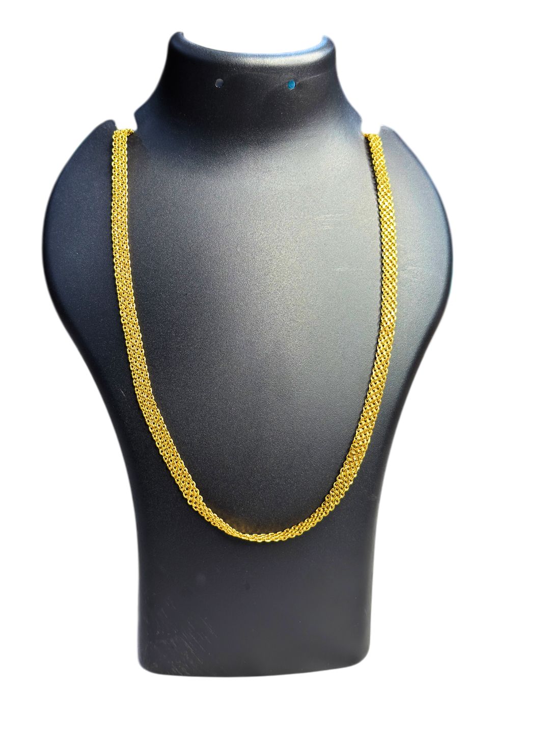 Elevate your elegance with this timeless Plain Gold Chain Necklace, a must-have accessory for every wardrobe. Crafted with precision, this necklace features a sleek and minimalist design, perfect for both casual and formal occasions. Made from high-quality, durable alloy with a radiant gold plating, it offers a luxurious sheen that resembles real gold while being lightweight and skin-friendly.