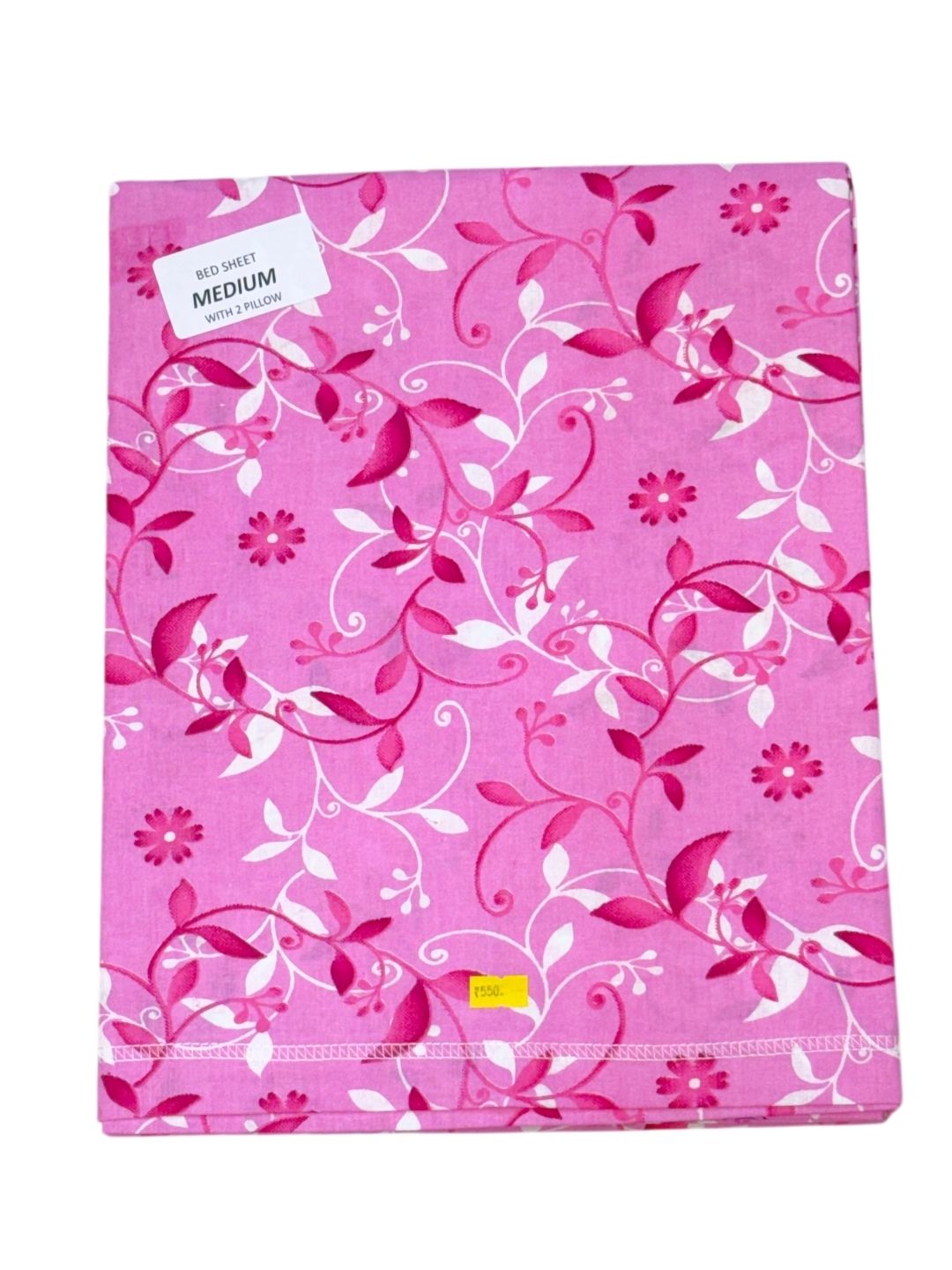 Premium Cotton Medium Size Bedsheet with 2 Pillow Cover | PINK