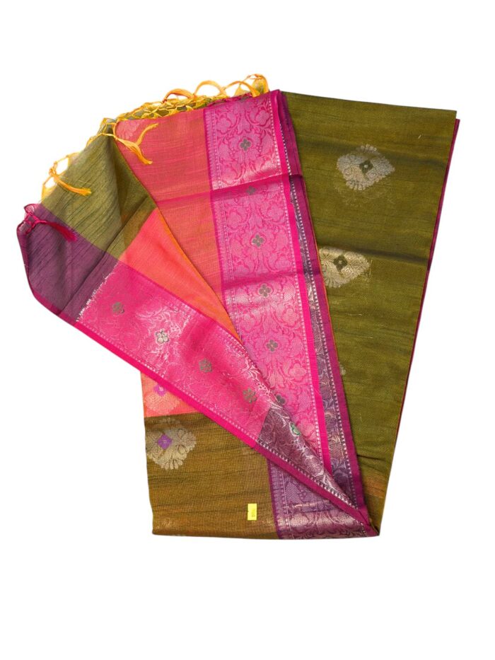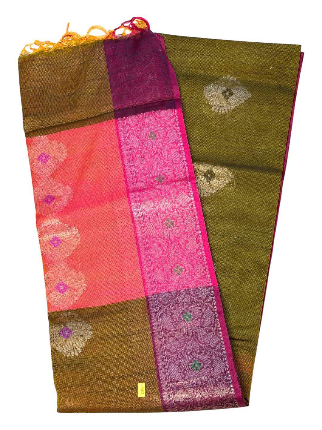 PREMIUM DUAL TONE SOFT SEMI SILK SAREE | PARROT GREEN