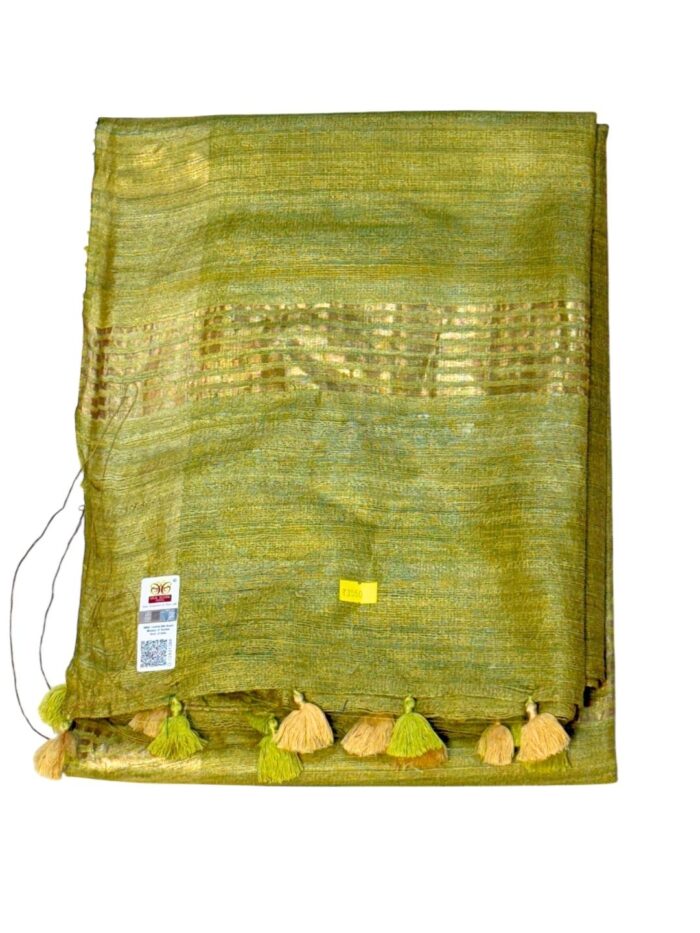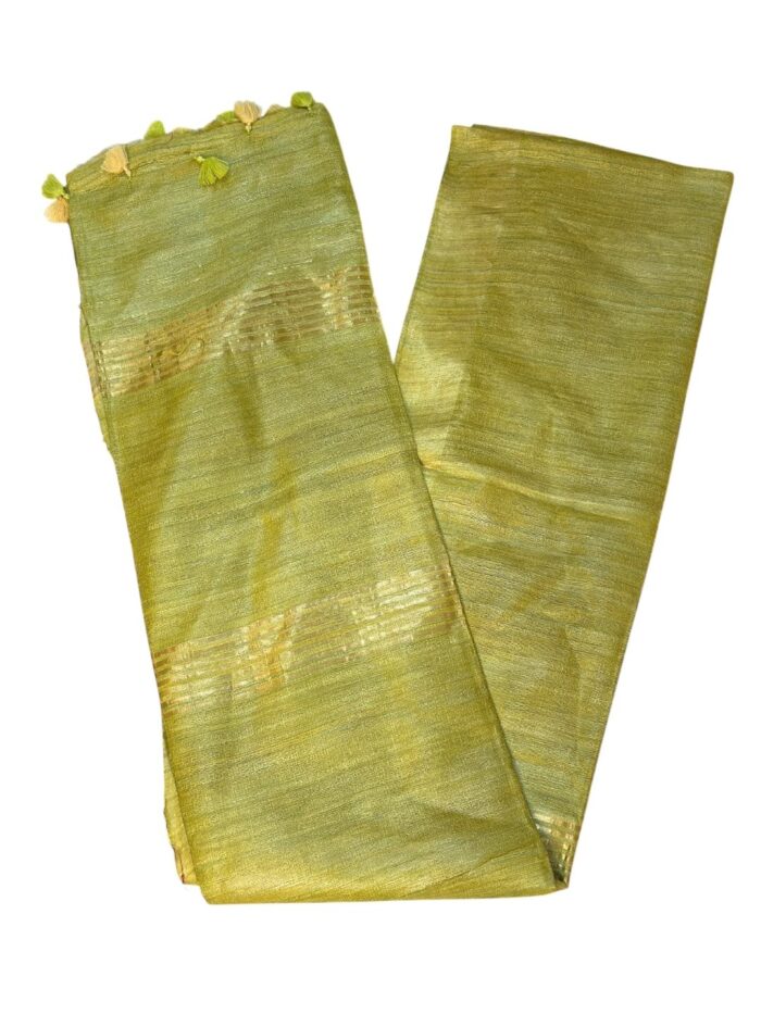 PREMIUM PURE GHICHA PLAIN SILK SAREE | PARROT GREEN