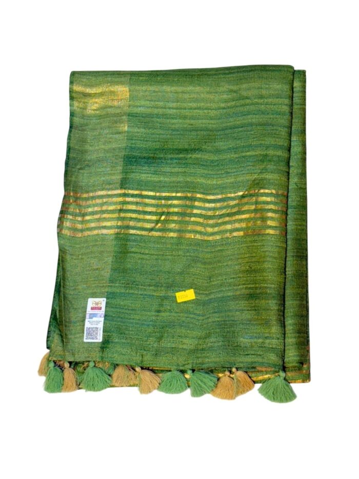 Home WOMEN Saree PREMIUM PURE GHICHA PLAIN SILK SAREE | GREEN