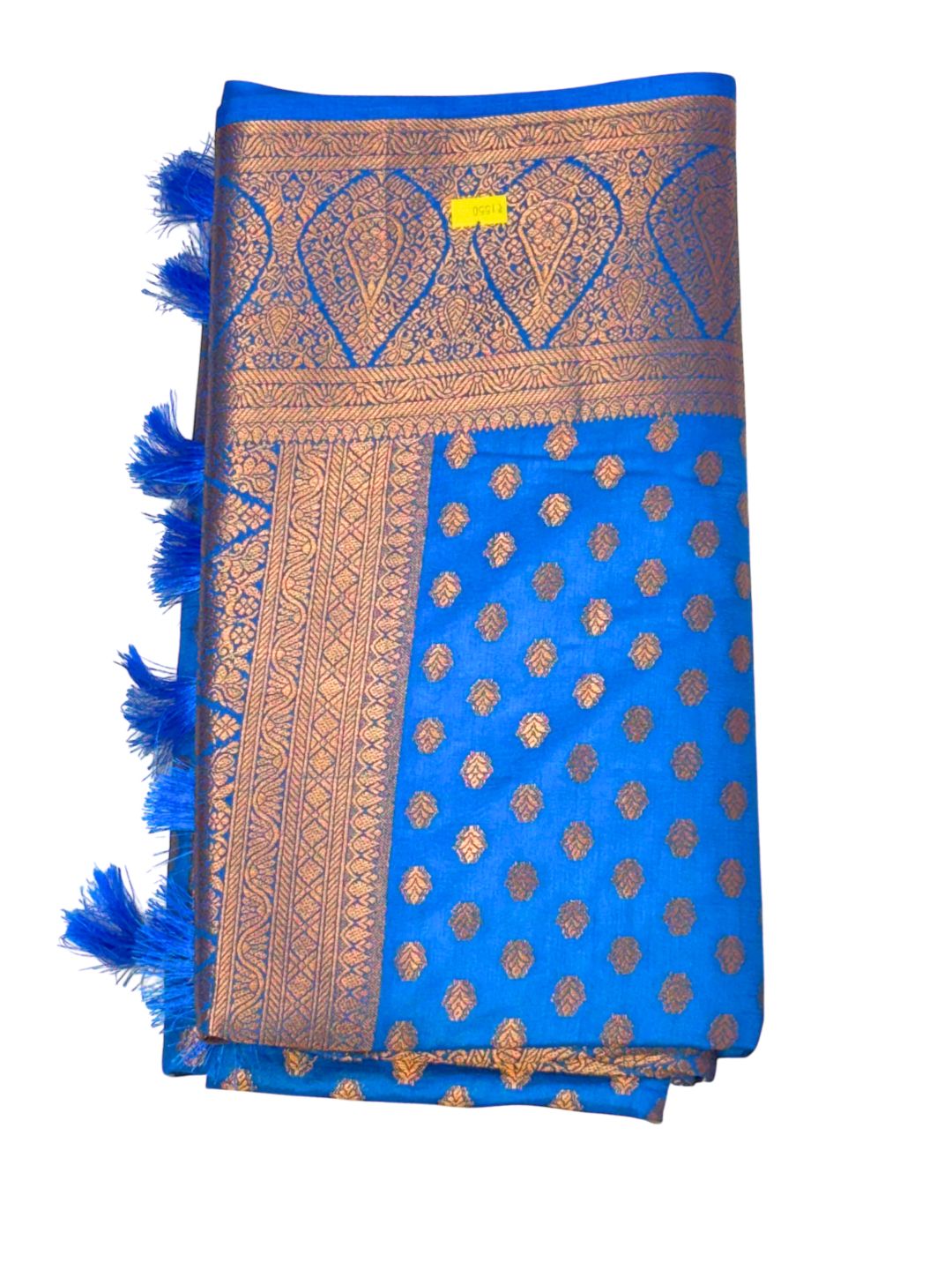PREMIUM SOFT SILK SAREE WITH GOLDEN JARIWORK | BLUE