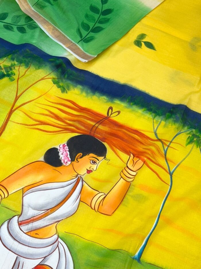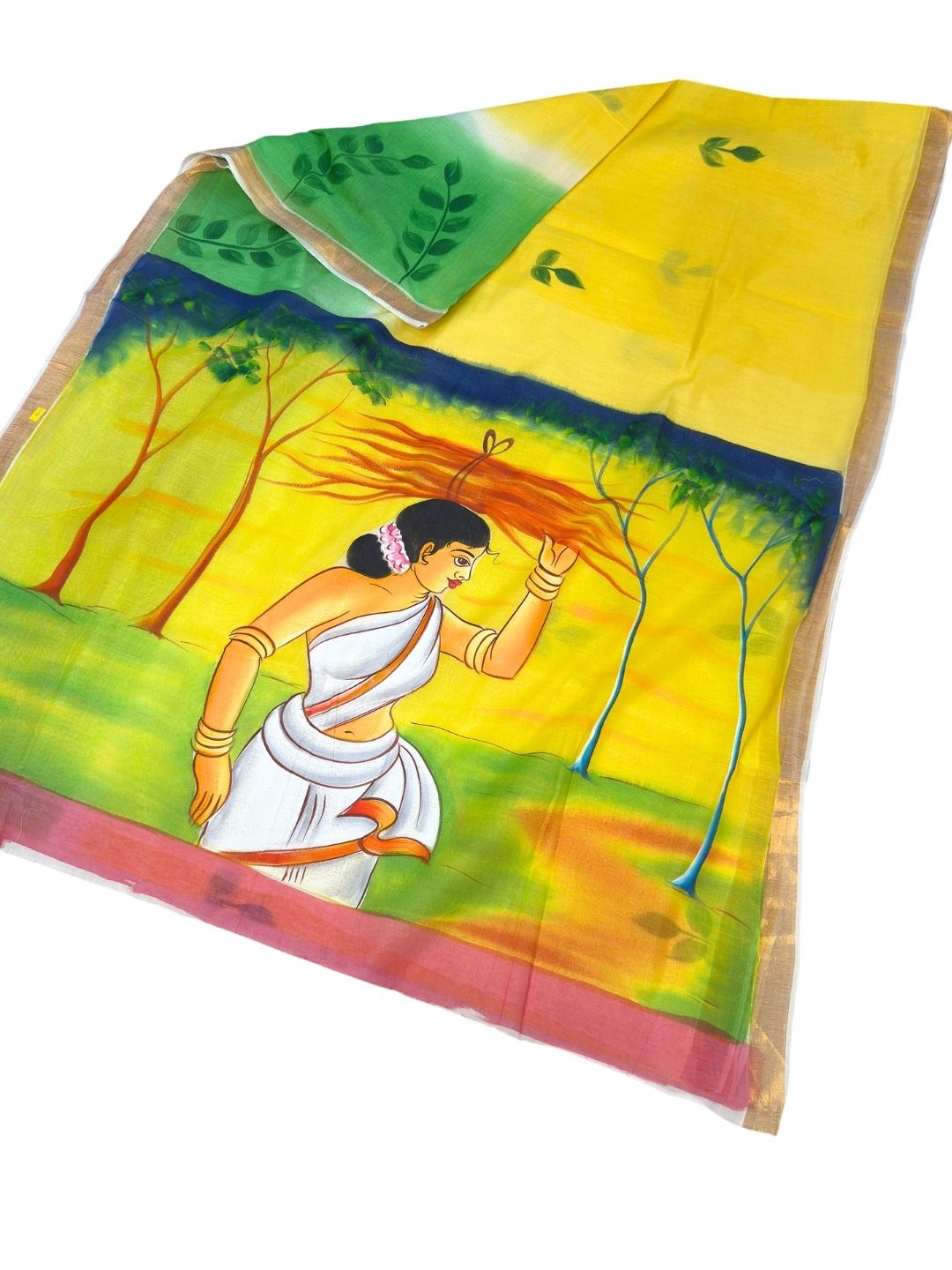Pure Kerala Cotton Saree with Hand Fabric Work – lightweight, breathable, soft texture, traditional Kerala handloom with unique handcrafted detailing. Perfect for festivals & daily ethnic wear.
