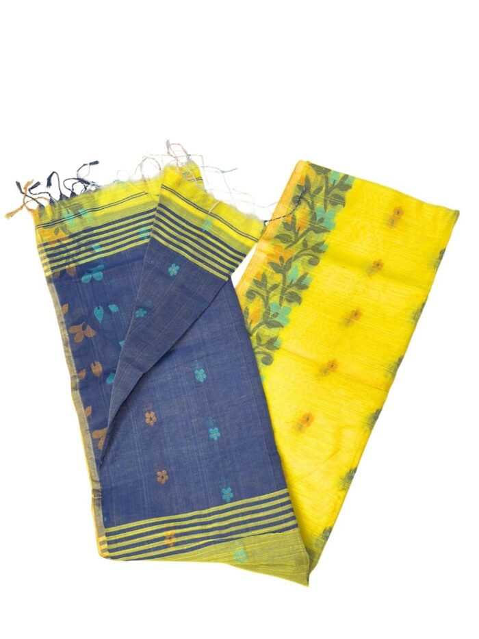 Soft Designer Handloom Saree| Yellow and Blue