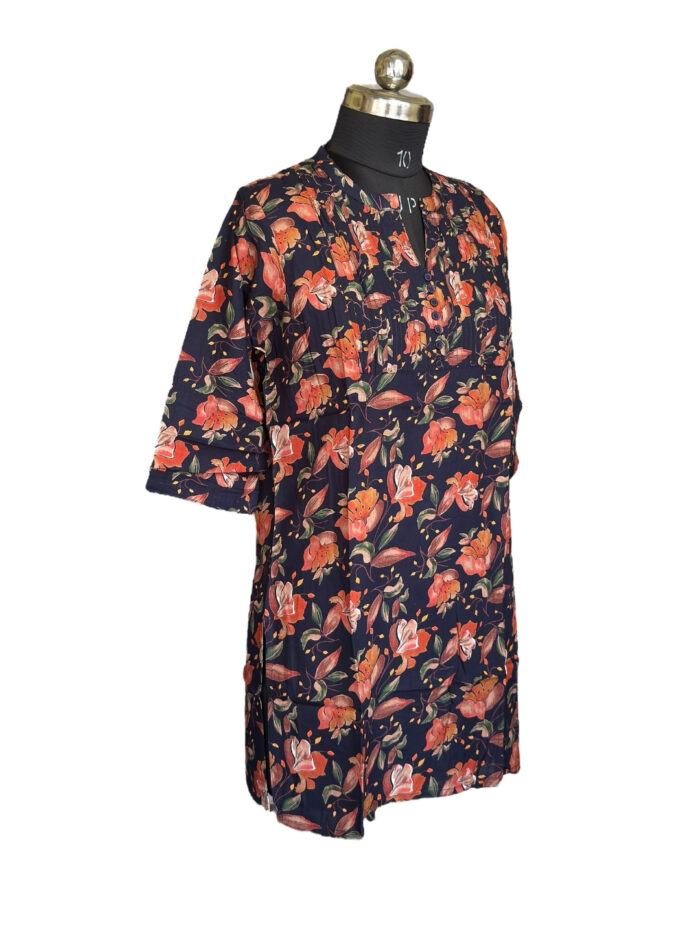 XL SIZE | LADIES PREMIUM COTTON SHORT KURTI | NAVY BLUE