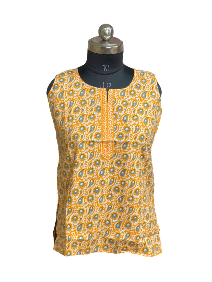 XL SIZE | LADIES BUDGET SLEEVELESS COTTON SHORT KURTI | PEACH