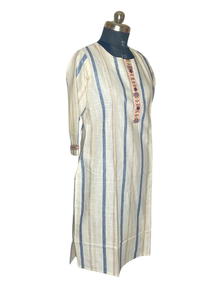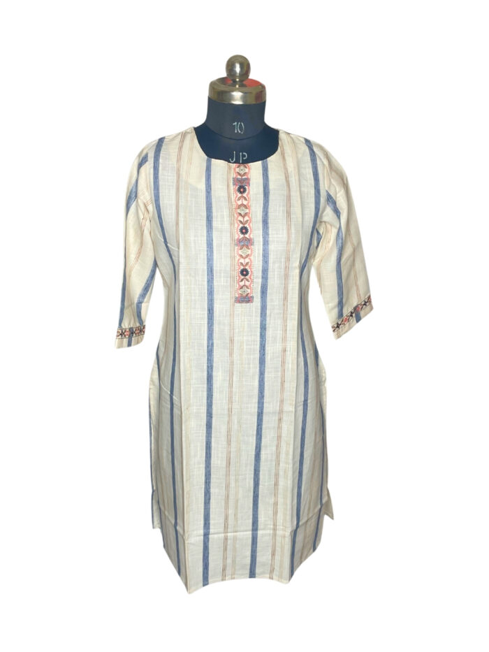 Ladies Premium Kurti | Cotton Blend | Floral Embroidery | Straight Cut | Round Neckline | Comfortable Ethnic Wear for Women | Casual and Festive