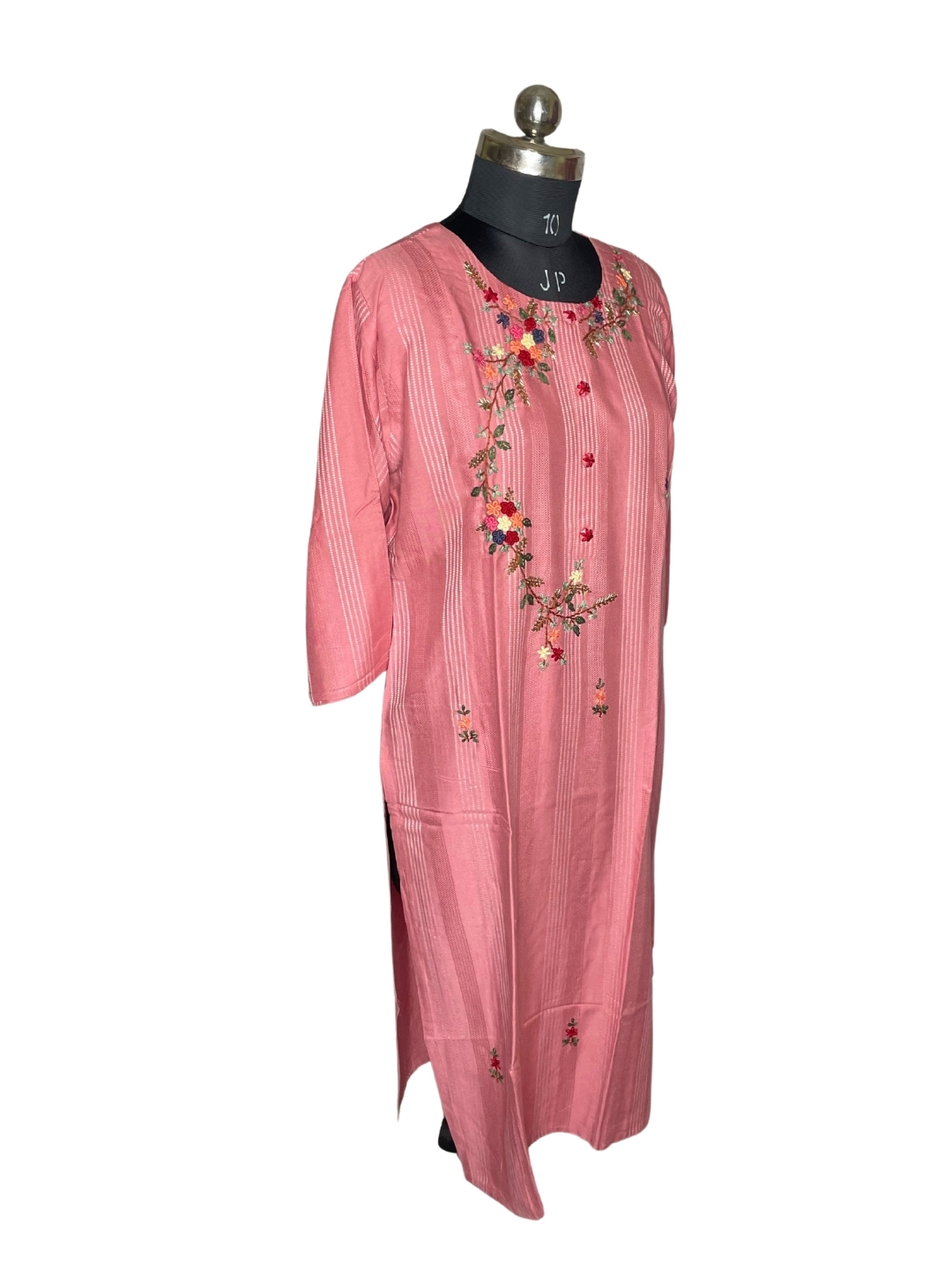 Ladies Premium Kurti | Cotton Blend | Floral Embroidery | Straight Cut | Round Neckline | Comfortable Ethnic Wear for Women | Casual and Festive