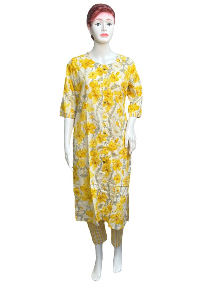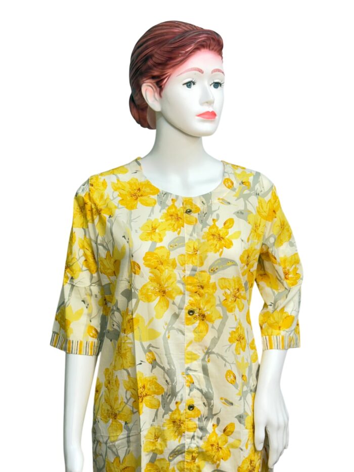 Home WOMEN Kurti Set XL SIZE| PREMIUM JAMINI COTTON 2 Pieces PRINTED Kurti/Salwar Suit| YELLOW