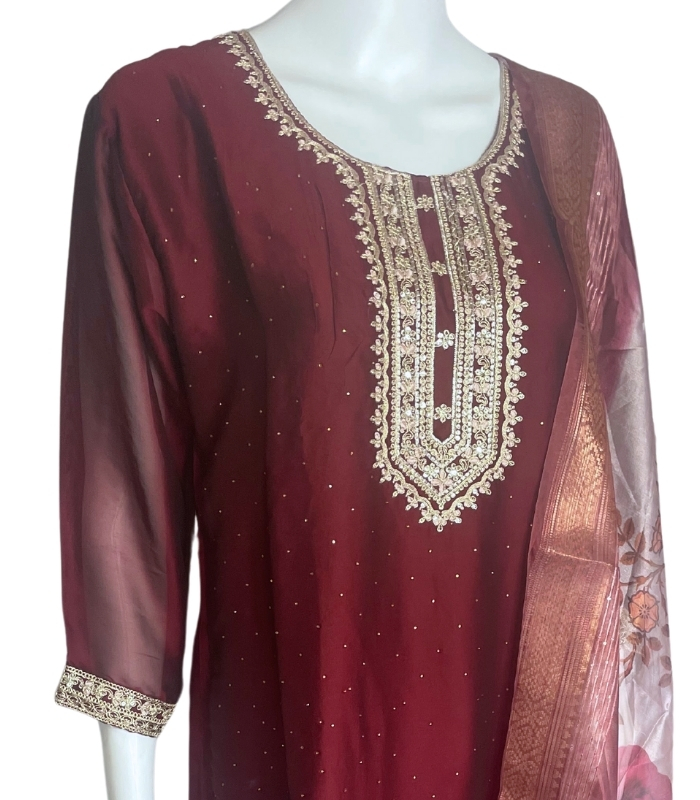Elevate your ethnic style with this Premium Silk 3-Piece Designer Kurti/Salwar Suit, a stunning ensemble that combines elegance, luxury, and traditional charm. Crafted from high-quality silk, this suit features a beautifully tailored kurti, a pair of matching salwar pants, and a complementary dupatta, making it ideal for festive gatherings, weddings, and special occasions. The kurti boasts intricate embroidery with delicate sequin work, adding a touch of sparkle and sophistication. The smooth, breathable silk fabric drapes gracefully and is soft against the skin, ensuring all-day comfort and ease of movement.