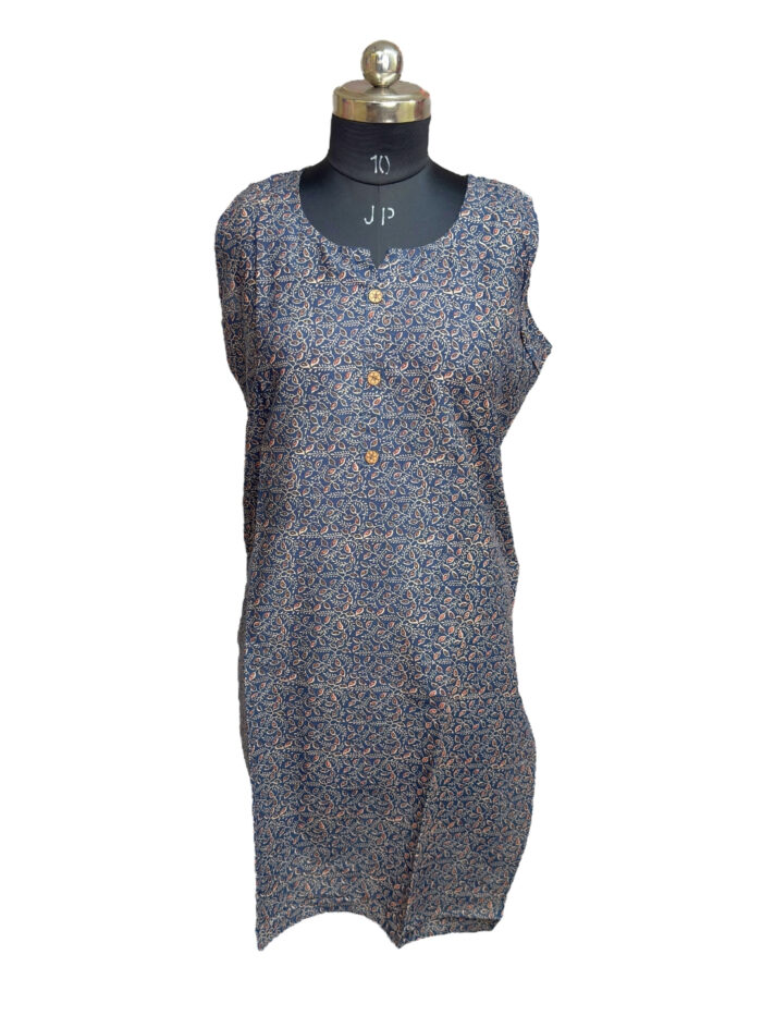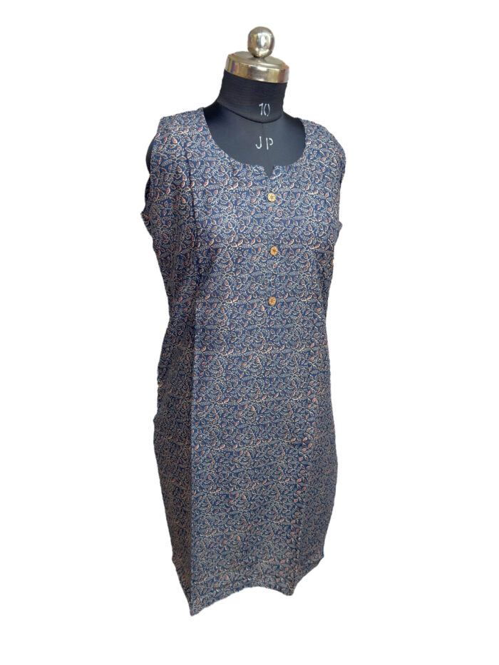 XXL SIZE| COTTON BUDGET KALAMKARI SLEEVELESS KURTI | BLUE