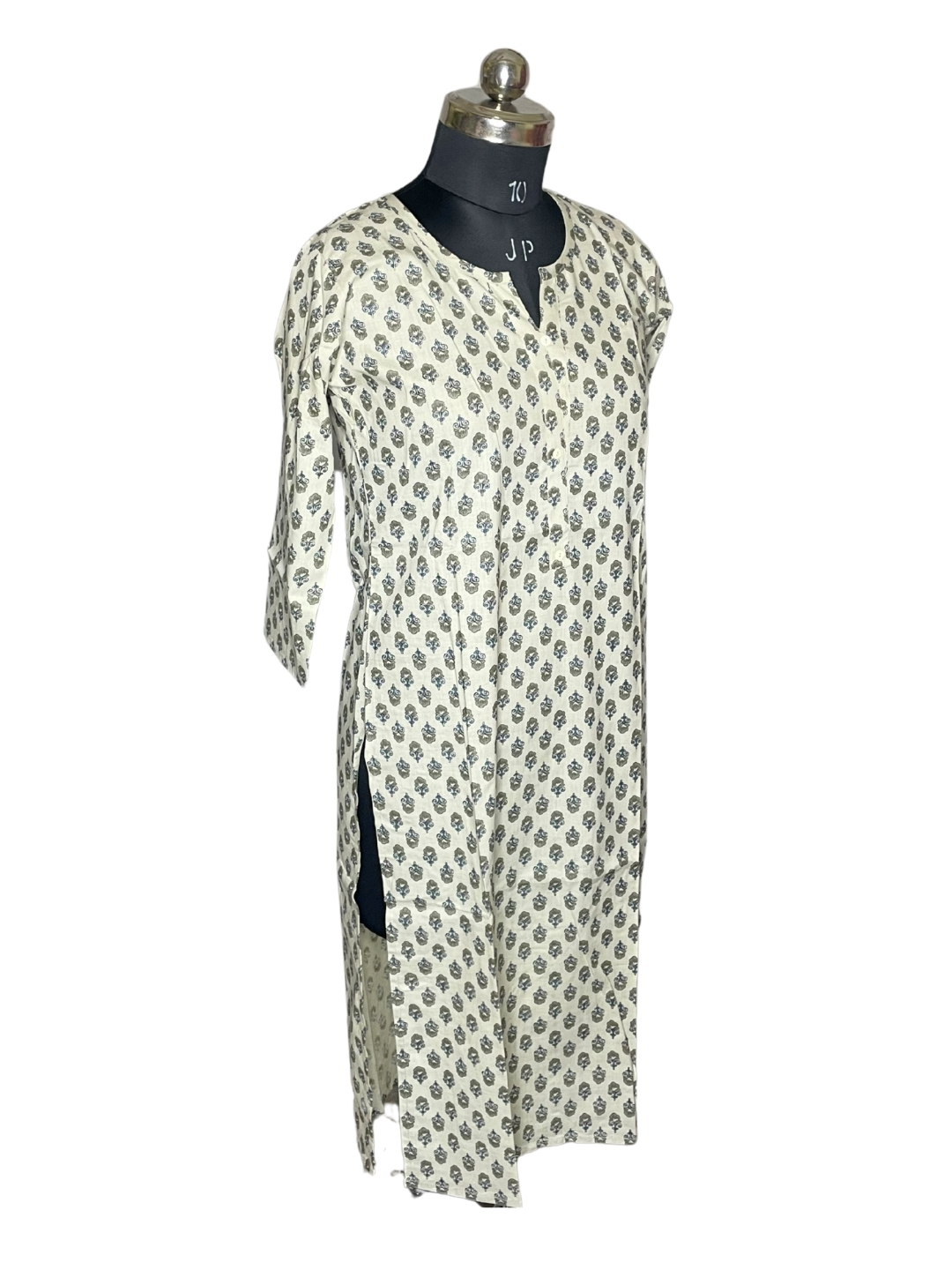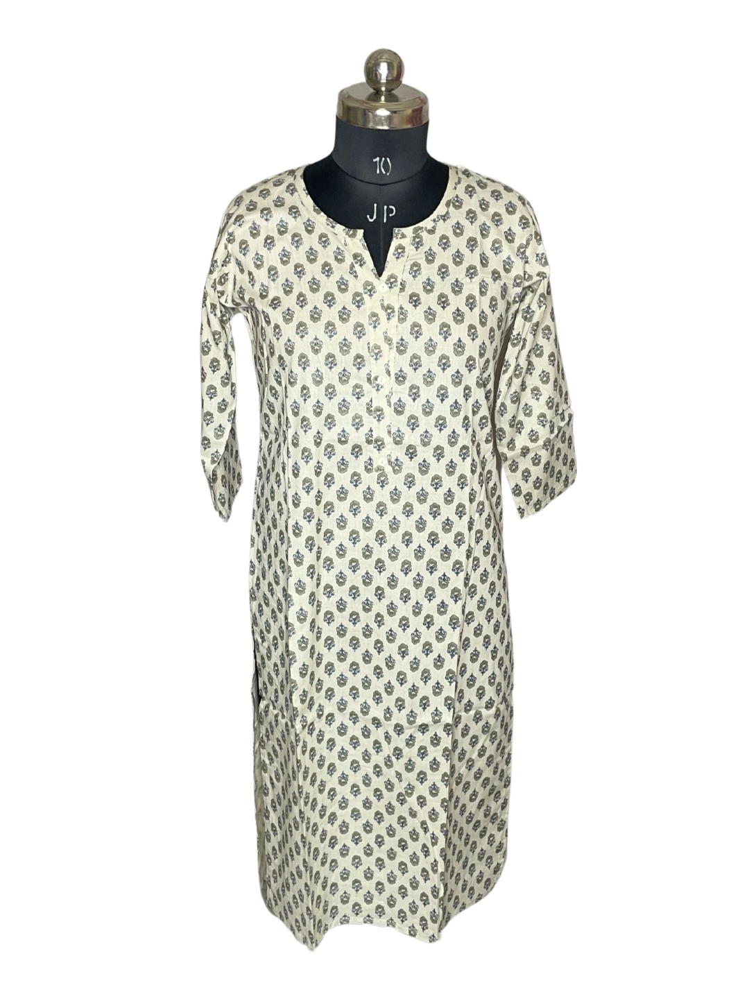 Ladies Premium Kurti | Cotton Blend | Floral Embroidery | Straight Cut | Round Neckline | Comfortable Ethnic Wear for Women | Casual and Festive