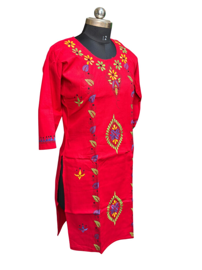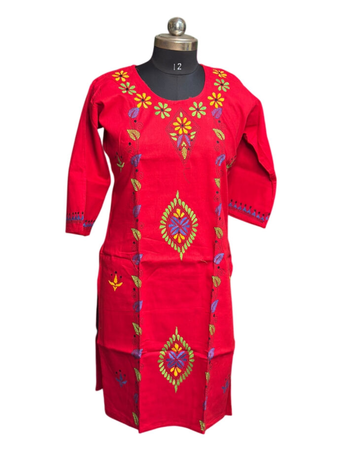Ladies Premium Kurti | Cotton Blend | Floral Embroidery | Straight Cut | Round Neckline | Comfortable Ethnic Wear for Women | Casual and Festive
