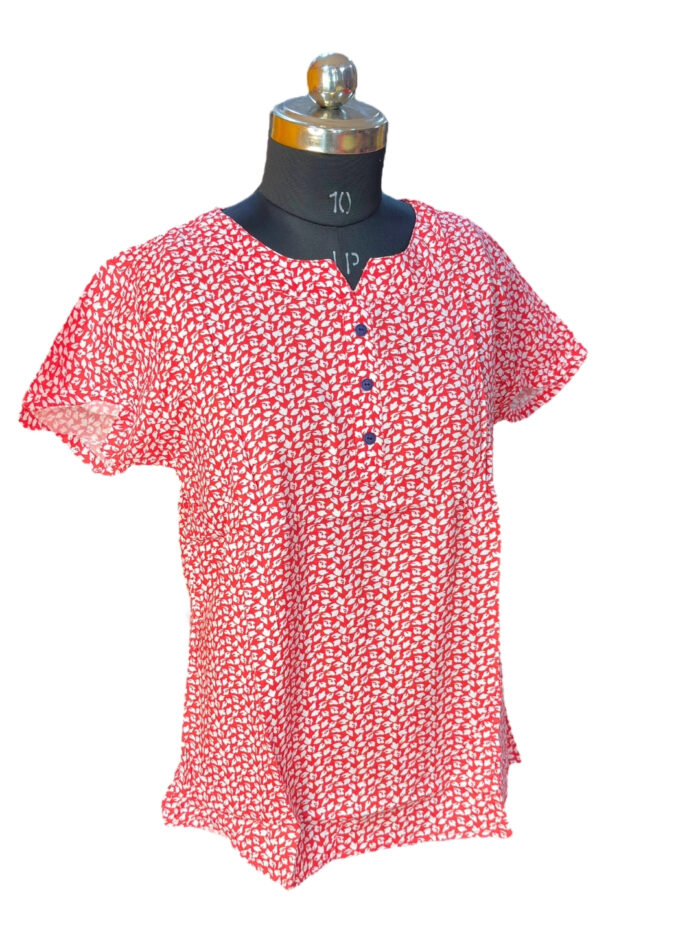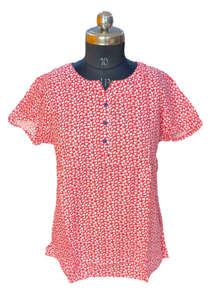 L SIZE | LADIES PREMIUM COTTON SHORT KURTI | RED