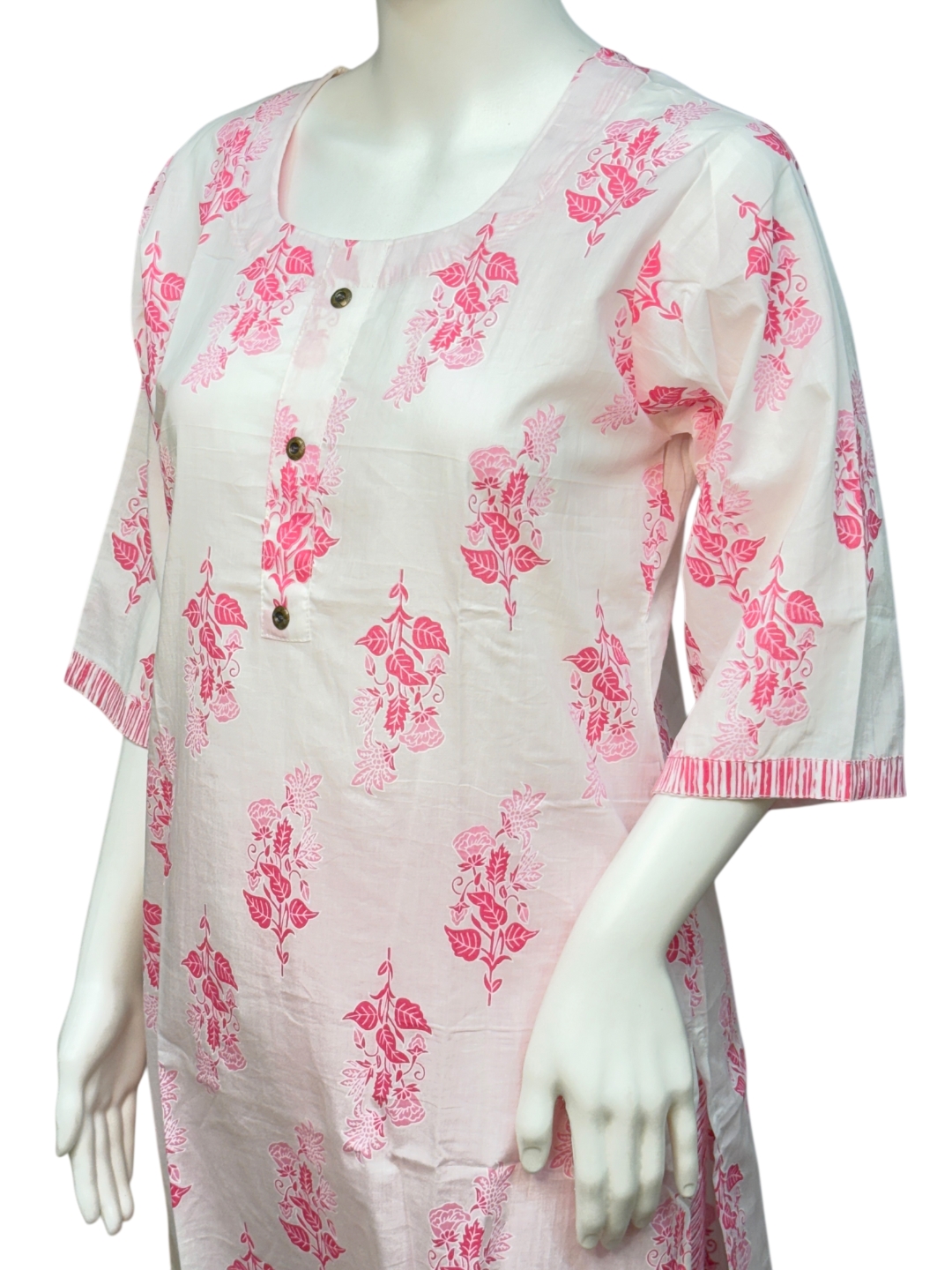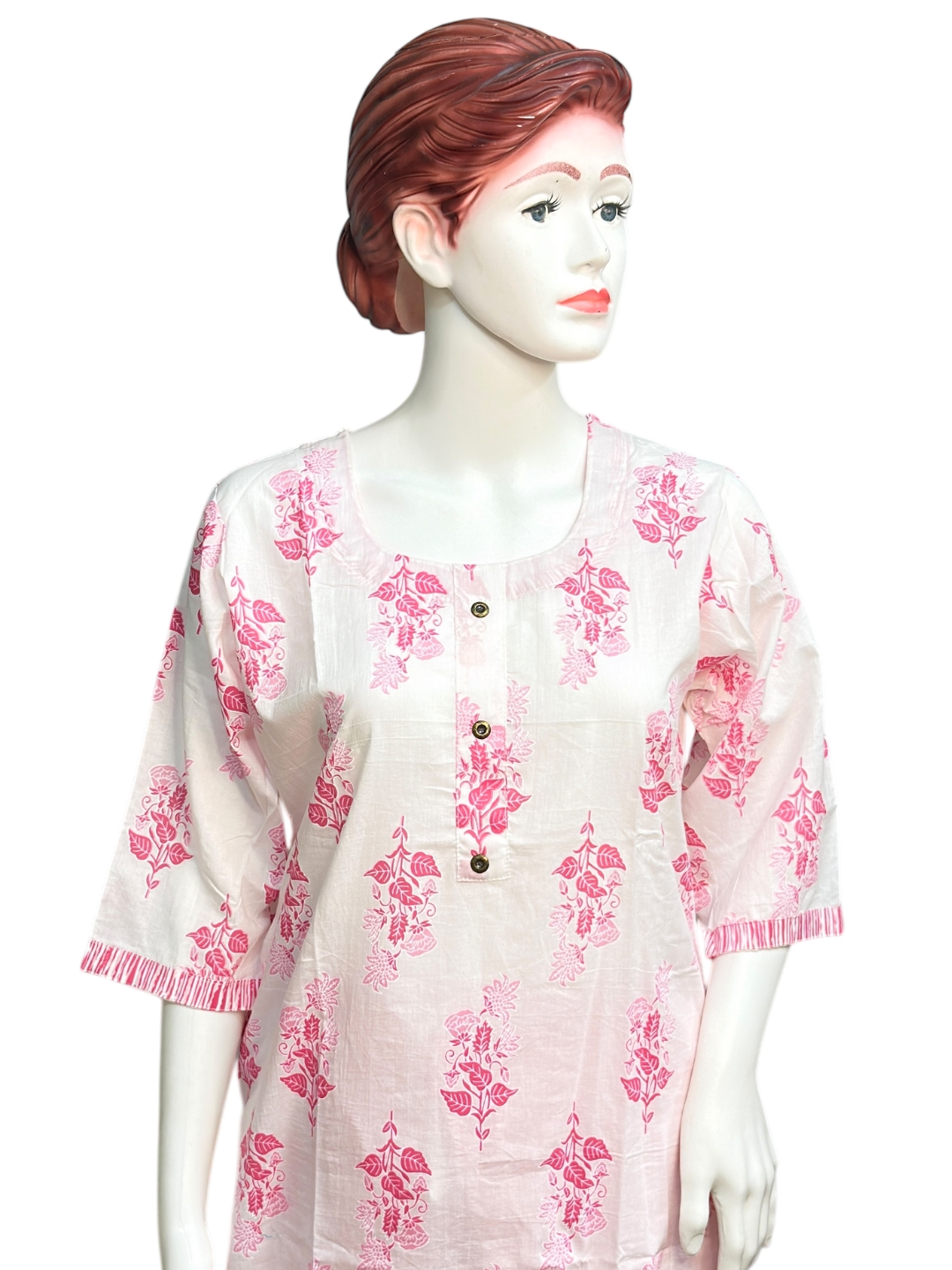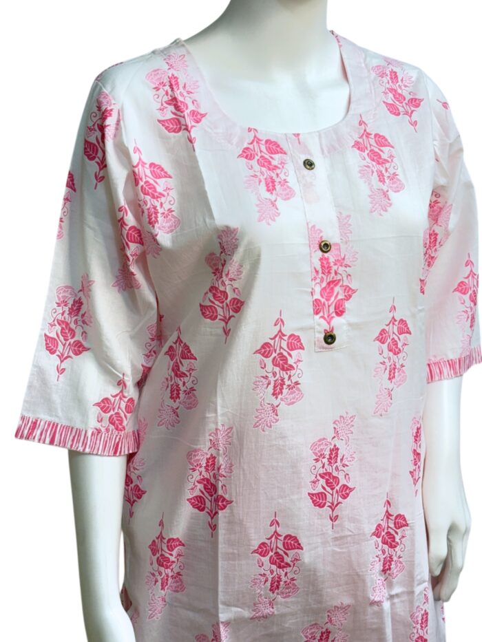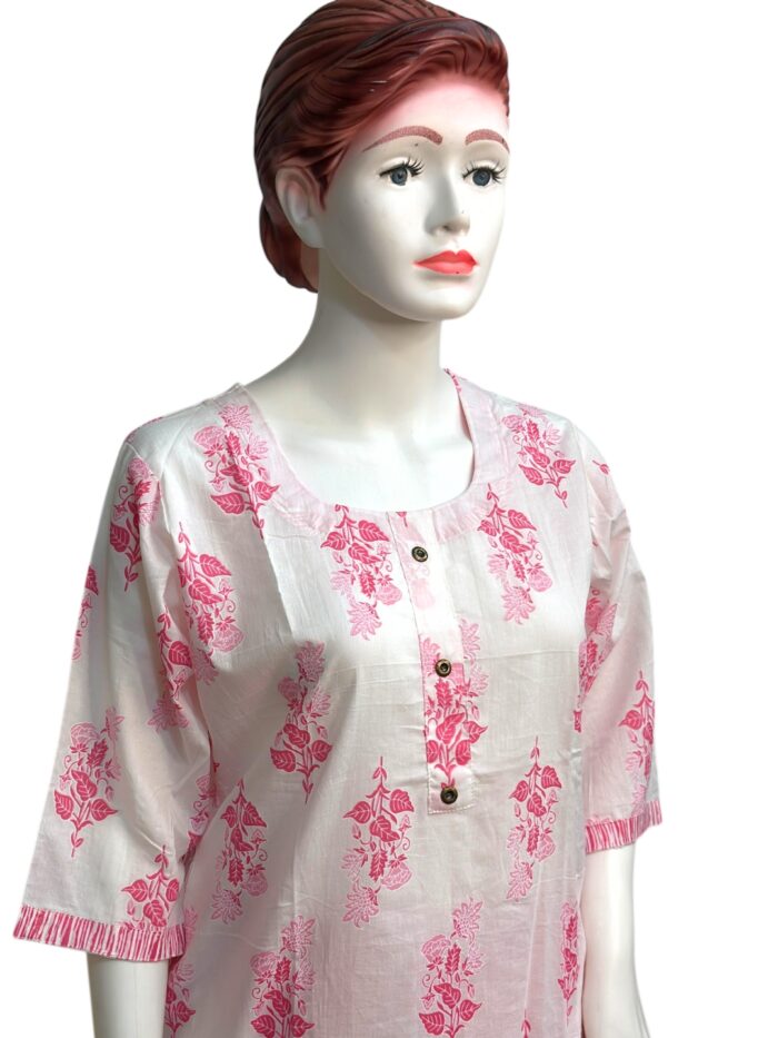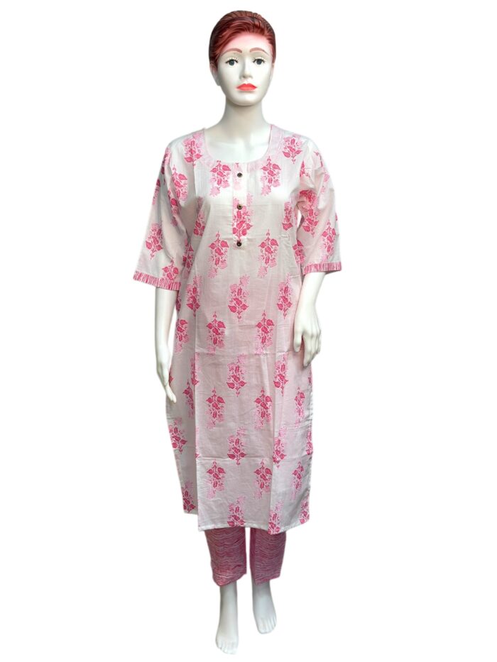 Home WOMEN Kurti Set XXL SIZE| PREMIUM JAMINI COTTON 2 Pieces PRINTED Kurti/Salwar Suit| White