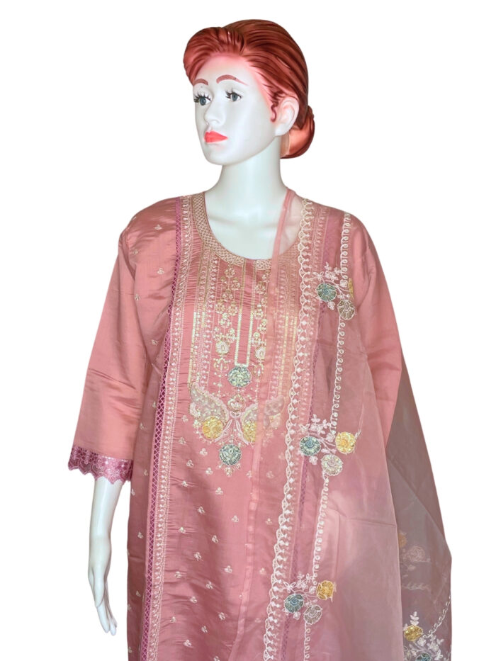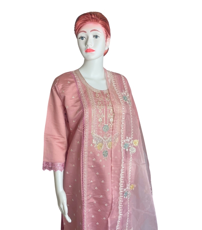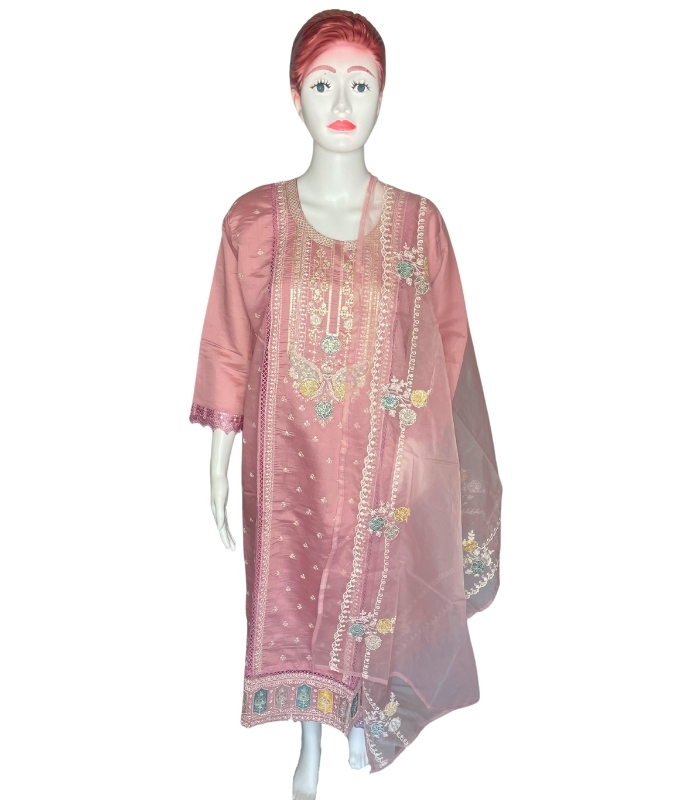 Premium Silk 3-Piece Designer Kurti/Salwar Suit – Elevate your ethnic wardrobe with this luxurious silk suit set, complete with embroidered kurti, matching salwar, and dupatta. Ideal for weddings, festivals, and special occasions. Perfect blend of elegance and comfort.